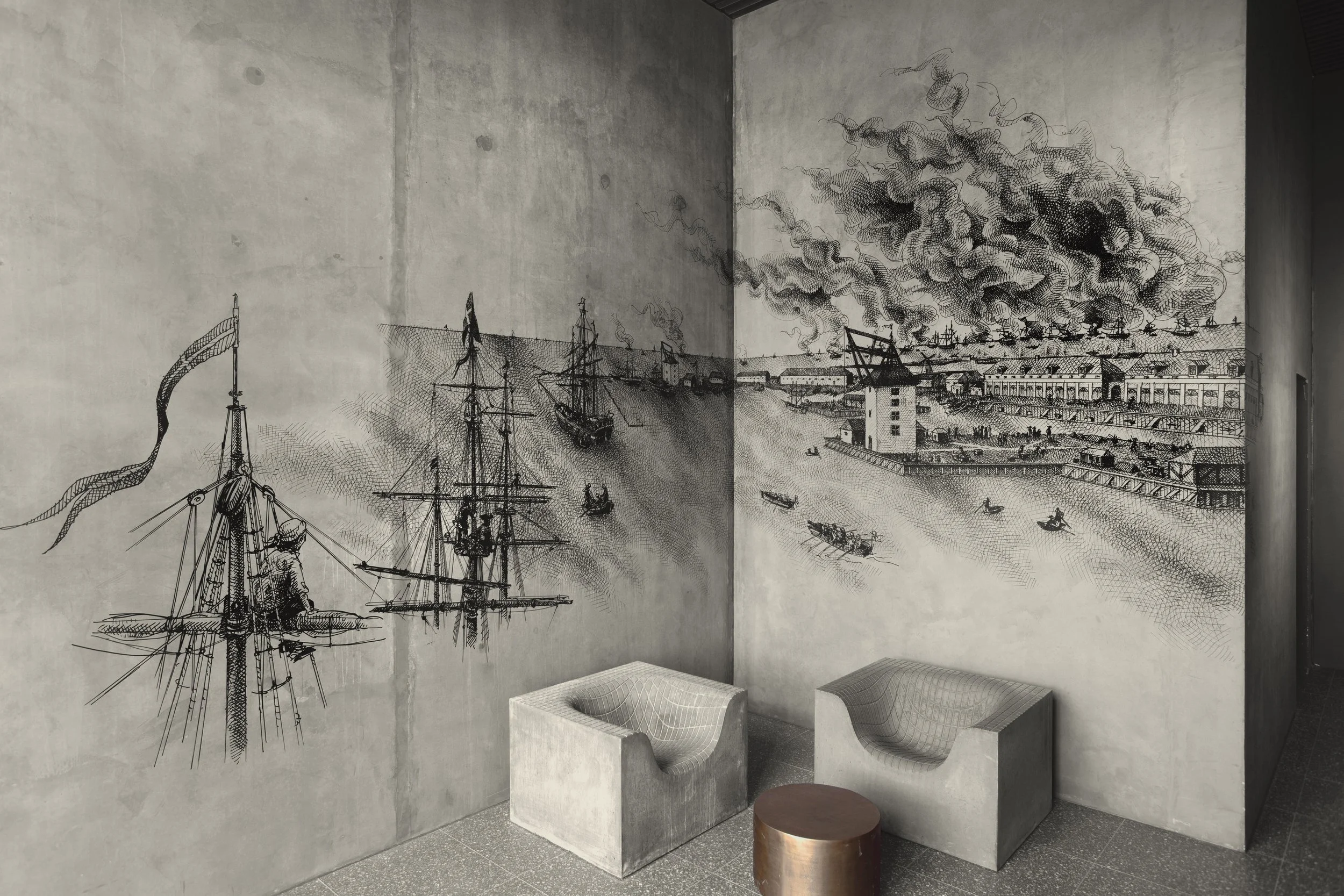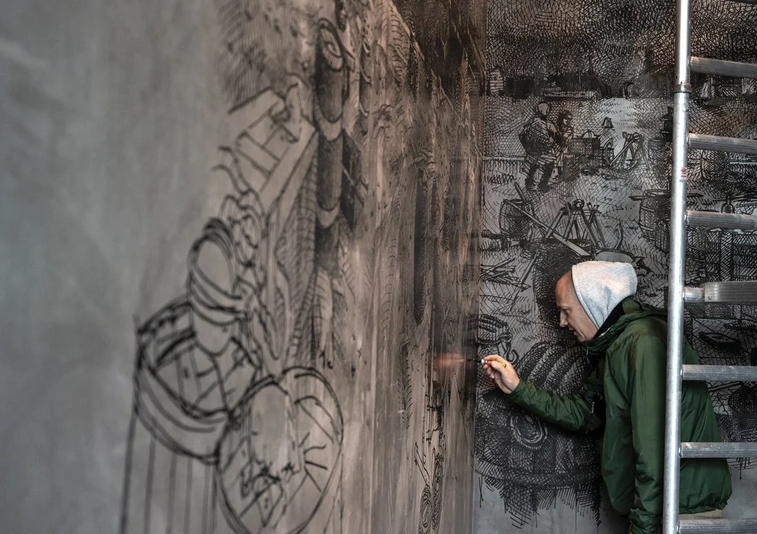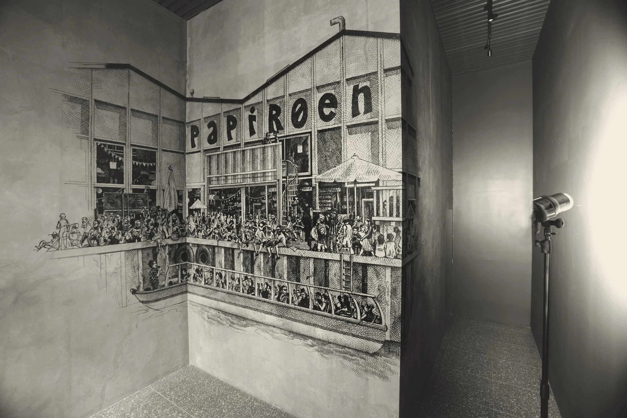 8 vægmalerier på Papirøen i Københavns havn baseret på øens historie. Forud for vægmalerierne er gjort et grundigt undersøgelses- og skitsearbejde for at kortlægge øens historie i samarbejde med historikere og arkæologer. De 8 vægmalerier viser vigtige tidspunkter i Papirøens fortid, som opleves kronologisk, når man går rundt om øen. Vægmalerierne er 8-12 meter brede, 6-9 meter høje og udført med sort pen direkte på rå beton i fri hånd.